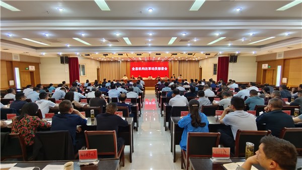 ??施懷中在講話中指出,機構改革是在黨中央和省委、市委統(tǒng)一部署下進行的一項重大改革,要把握上級精神、明確重點任務,全面落實機構改革各項部署要求。全縣各級各部門要學深悟透習近平總書記關于深化黨和國家機構改革的重要論述和重要指示精神,切實把思想和行動統(tǒng)一到黨中央決策部署和省委、市委工作要求上來,提高政治站位,切實增強推進改革的思想自覺、政治自覺、行動自覺,確保圓滿完成改革各項任務。