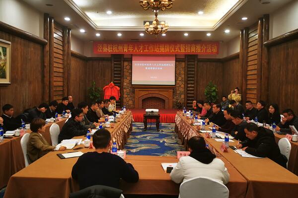 12月29日,涇縣在杭州舉辦涇縣駐杭州青年人才工作站揭牌儀式暨招商推介座談會。縣委常委、組織部長朱偉出席會議并講話。40余名涇縣籍在杭優(yōu)秀人才代表齊聚一堂,共敘家鄉(xiāng)之情、共謀發(fā)展之道。縣委組織部副部長潘紅晟、團(tuán)縣委書記彭浩、縣招商合作服務(wù)中心主任楊勇參加座談會。