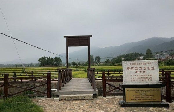 在羅里村口東首的棗樹壩下,橋的北首是一座小小的葉子山,山下是葉子河,清清溪水繞過村口向西流去。原來河上群眾用木頭搭成的簡易小橋,供行人過往,由于橋十分簡易,孩子上學很不方便,新四軍進駐云嶺以后,行人陡增。因為它是南堡與羅里兩村之間的必經要道,1938年底,由葉挺軍長提議,軍部副官處負責建造了一座長2米,寬2米的木質結構大橋,橋建成以后,當地群眾高興地贊頌新四軍是人民的子弟兵,稱這座橋為“軍民橋”。全國解放后,云嶺人民心中對葉挺軍長無限敬愛,把這座“軍民橋”改稱為“葉挺橋。1956年11月22日,安徽省人民委員會宣布“葉挺橋”為全省重點文物保護單位。